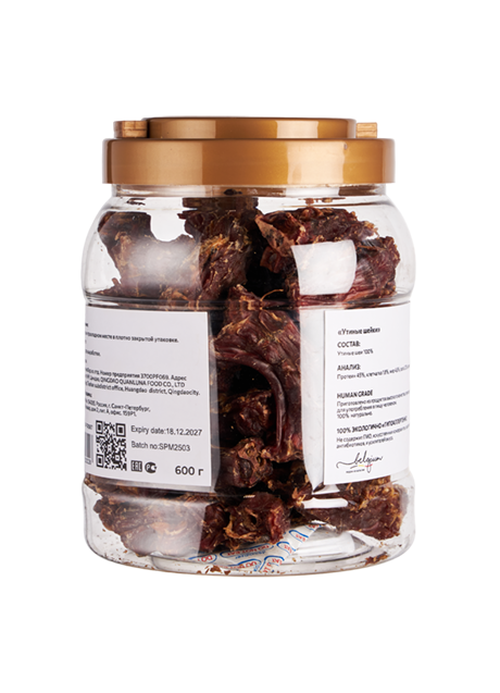 Сушеные утиные шеи имеют жесткую текстуру, что хорошо способствует очищению зубов и массированию десен, а так же снижают стресс и беспокойство. Не вызывает аллергии, полностью усваивается, 100% натурально.